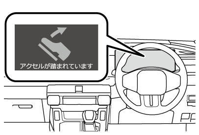 メッセージが表示されたときは、すみやかにアクセルペダルから足を離し、ブレーキペダルを踏んでください。