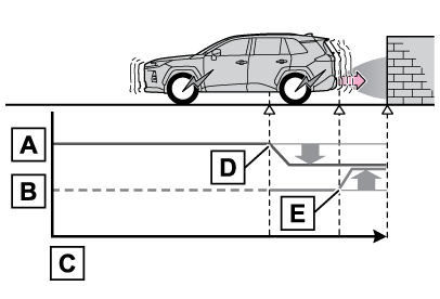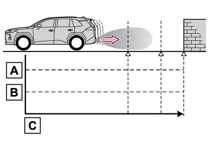 PKSB(パーキングサポートブレーキ)は、完全に車両を停止させるシステムではありません。また、車両を停止させることができたとしても、ブレーキ制御は約2秒で解除されるため、すぐにブレーキペダルを踏んでください。