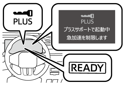 プラスサポートを使用するためには、プラスサポート用スマートキー(以下、サポキー)が必要です。プラスサポートおよびサポキーは販売店装着オプションです。