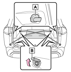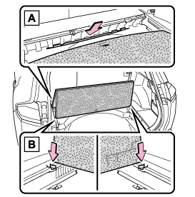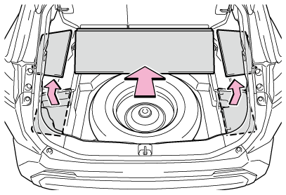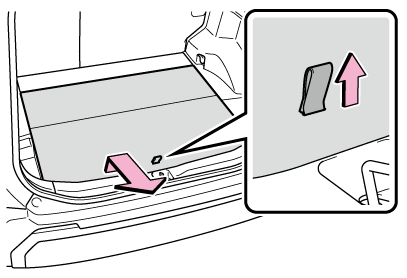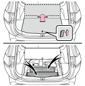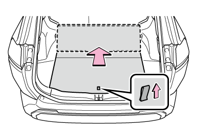 ストラップを引き上げ、車両前方に向けてデッキボードを折りたたむ