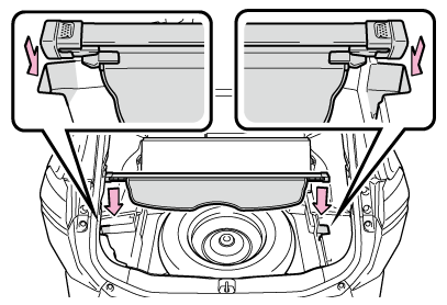 2. 左右の先端を引き、取り付け用の溝からはずす