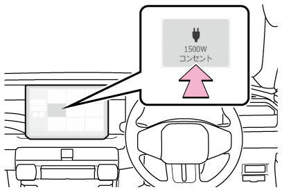 車内において、AC100Vで消費電力の合計が1500W の電気製品を使用することができるシステムです。(→アクセサリーコンセントを使用するには)