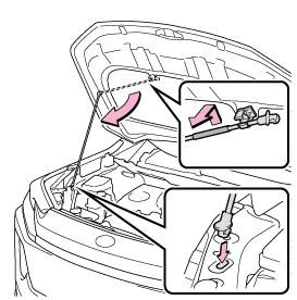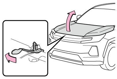 ボンネットステーをステー穴から取りはずし、クリップに正しくもどしてください。