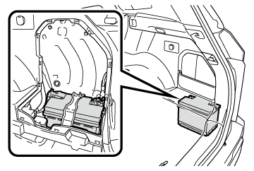 この車両の補機バッテリーはラゲージルーム(運転席側)のラゲージサイドトレイ内にあり、エンジンルームには搭載されていません。