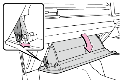 - グローブボックス側面を内側に押して上部のツメを片側ずつはずし、グローブボックスを支えながらゆっくりと全開させる