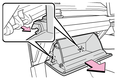 - グローブボックスがいっぱいまで開いた状態から、少しだけ持ち上げた位置で手前に引き、グローブボックス下部の結合部をはずす軽く引いても結合部がはずれない場合は、無理に引っ張らず、持ち上げる量を微調整しながら手前に引いてください。