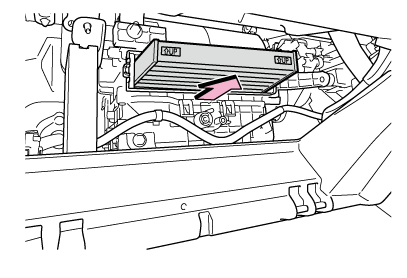 必ず指定の手順(→交換するには)に従って取りはずしてください。正しい方法で取りはずさないと、グローブボックス下部の結合部が破損するおそれがあります。