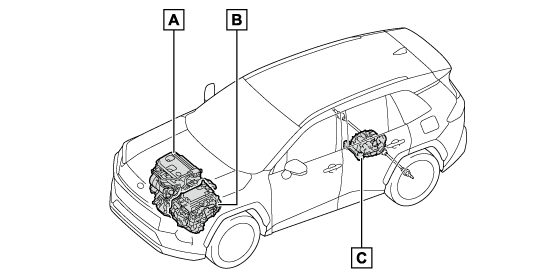 • ハイブリッドシステム始動時や停止時に聞こえる、車両後方および駆動用電池からの音