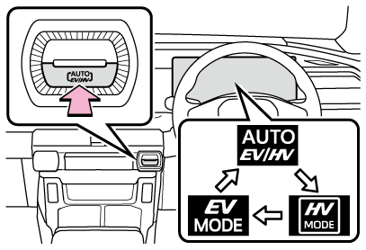 車両がEV走行可能な状態のとき、スイッチを操作することでEVモードとAUTO EV/HV モードを切りかえることができます。(→プラグインハイブリッドシステムの作動モードを切りかえるには