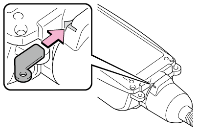 5. コントロールユニットの解除穴に解除キーを奥まで挿し込んだまま、電源プラグコードのナット部をまわして、電源プラグコードを取りはずす