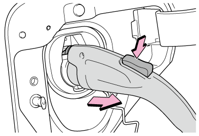 普通充電コネクターがロックされている場合は、アンロックしてからはずしてください。(→普通充電コネクターのロック・アンロック)