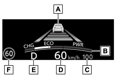 表示内容は、走行状況・走行モードやヘッドアップディスプレイの表示モードによって異なります。また、状況に応じて割り込み表示されます。