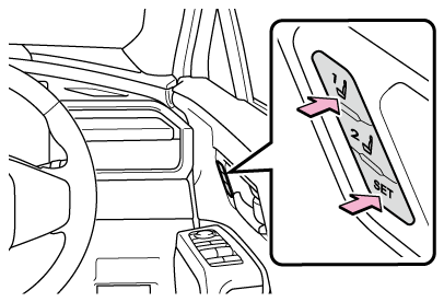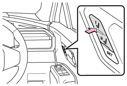運転席ドアを開けて180秒以内、または運転席ドアを閉めて60秒以内に呼び出したいポジションのボタンを押すと、シートの位置が調整されます。