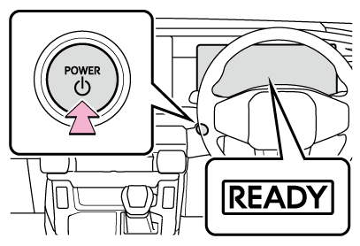 表示されないと、ハイブリッドシステムは始動しません。シフトポジションがN と表示されているときは、ハイブリッドシステムを始動できません。ハイブリッドシステムの始動時は、シフトポジションをPにしてください。(→シフトポジションの切りかえ方法と表示について) - パワースイッチを短く確実に押す短く確実に押せば、押し続ける必要はありません。READY インジケーターが点灯すれば、ハイブリッドシステムは正常に始動しています。READY インジケーターが点灯するまでブレーキペダルを踏み続けてください。パワースイッチのどのモードからでもハイブリッドシステムを始動できます。