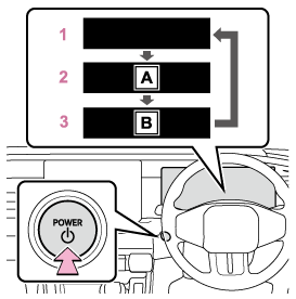 パワースイッチがOFFのとき、電子キーまたはデジタルキーを携帯したままブレーキを踏むと、パワースイッチ文字照明が点滅します。