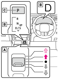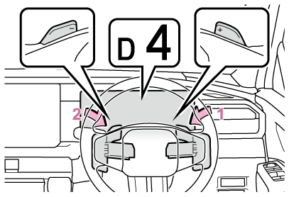 燃費向上や騒音の低減のために、通常はDを使用してください。パドルシフトスイッチの操作で、走行に適したレンジを選択することができます。