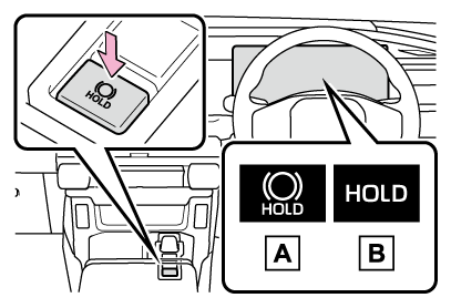 ブレーキペダルを踏んだ状態でブレーキホールドスイッチを押し、ブレーキホールドシステムをOFFにしてください。