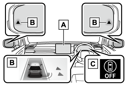 センサー周辺のバンパーに汚れや着雪がある場合、警告表示とともにシステムが作動しなくなることがあります。その場合、汚れや雪を落としたあと、BSM機能の作動条件(→作動条件)でしばらく走行してください(目安:約10分)。それでも警告表示が消えない場合はトヨタ販売店にて点検を受けてください。