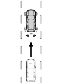 セカンダリーコリジョンブレーキ(停車中後突対応)は、同じ車線を走行する後方車両が追突の可能性が非常に高い状況のとき、検知範囲に入った車両を検知します。