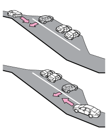 - ドアミラーインジケーター自車の右後方または左後方から接近している車両や自転車を検知したときは、接近方向のドアミラーインジケーター(→表示灯一覧)が点滅し、ブザーが鳴ります。