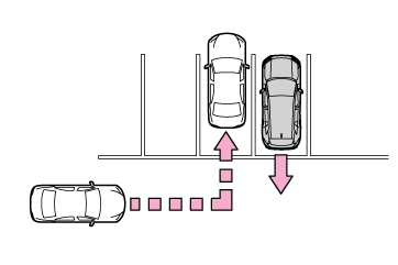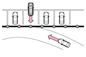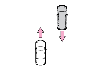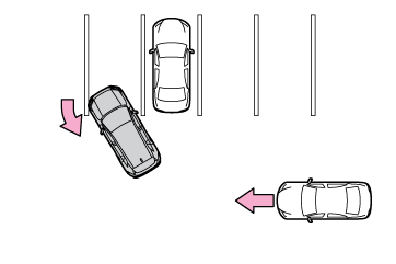 - マルチメディアディスプレイ自車の右後方または左後方から接近している車両や自転車を検知したときは、マルチメディアディスプレイに検知した側のRCTAアイコン(→RCTAアイコンの表示)が点灯します。イラスト