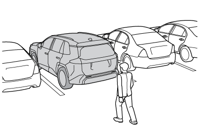 パーキングサポートブレーキ(後方歩行者)の検知範囲は、RCDの検知範囲(→歩行者を検知した場合)とは異なります。そのため、RCDが後方歩行者との接近をお知らせしても、パーキングサポートブレーキ(後方歩行者)は作動を開始していない場合があります。