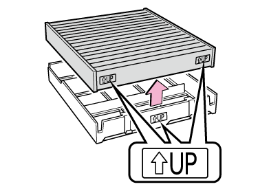UP」マークの矢印が上を向くように取り付けます。