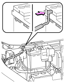 - 電子キーを携帯していることを確認するブースターケーブル接続時、場合によっては、オートアラームが作動し自動的にドアが施錠されます。(→オートアラーム作動によるドアロック機能)