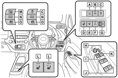 - ドアミラードアミラー鏡面の角度調整調整するにはミラーの格納ドアミラーを格納・復帰するには曇りを取る(ミラーヒーター)リヤウインドウデフォッガー&ミラーヒーター, リヤウインドウデフォッガー&ミラーヒーター