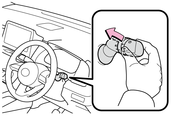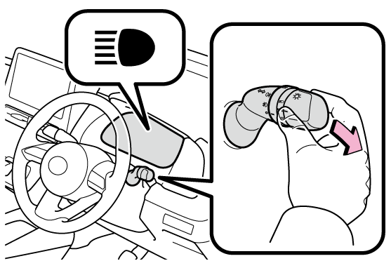 レバーがロービームの位置にあるとき、オートマチックハイビームが作動し、AHB表示灯が点灯します。