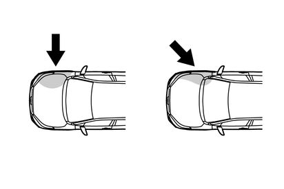 フロントSRSエアバッグは、側面や後方からの衝撃・横転・または低速での前方からの衝撃では、通常は作動しません。ただし、それらの衝撃が前方への減速を十分に引き起こす場合には、フロントSRSエアバッグが作動することがあります。
