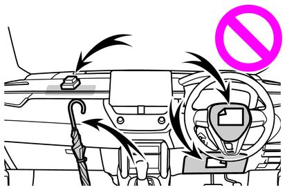 ダッシュボード・ハンドルのパッド部分・インストルメントパネル下部などには何も取り付けたり、置いたりしない