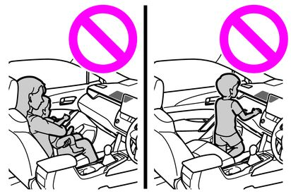 お子さまを助手席SRSエアバッグの前に立たせたり、ひざの上に抱いたりしない