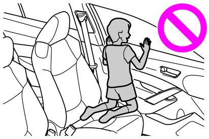 助手席では、ドアに向かってひざをついたり、窓から顔や手を出したりしない