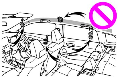 ドア・フロントウインドウガラス・ドアガラス・フロントピラーおよびリヤピラー・ルーフサイドレール・アシストグリップなどには何も取り付けない(速度制限ラベルを除く →タイヤパンク応急修理キットの内容/各部の名称)