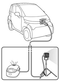 普通充電インレットに専用変換アダプタ(ヴィークルパワーコネクタ)を取り付け、外部給電開始操作を行うことで、AC100Vで最大消費電力の合計が1500W以下の電気製品を使用することができるシステムです。