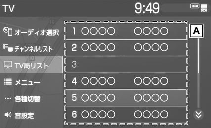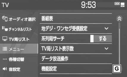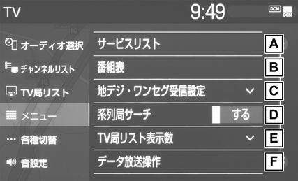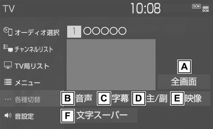 地上デジタルテレビ操作画面を表示するにはオーディオソース選択画面で“TV”を選択します。