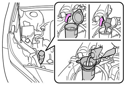エンジンが熱いときやエンジンがかかっているときは、ウォッシャー液を補充しないでください。