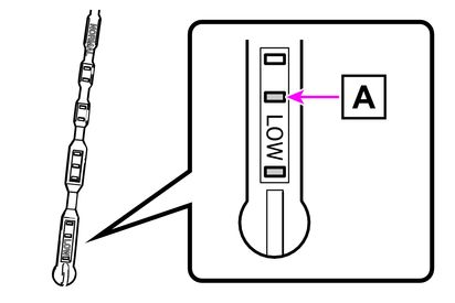 残量がゲージの先端から2つめの穴部より下まわった(LOWの位置まで低下した)ら、ウォッシャー液を補充してください。