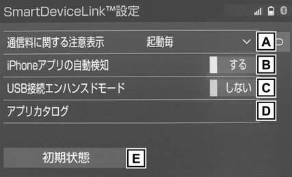 SmartDeviceLink™ Appsに関する設定を変更できます。