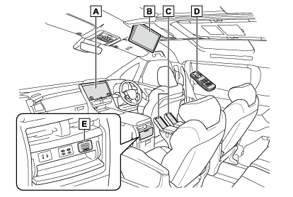 • リヤシートエンターテインメントシステムは、エンジンスイッチ<パワースイッチ>がACC、ON またはマルチメディアシステムの電源がONのときに使用できます。