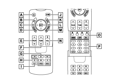 リヤシートエンターテインメントシステムは、リモコンで操作できます。リヤシートエンターテインメントシステムに表示されるボタンに直接触れても操作できません。リモコン取り扱い時の注意事項の詳細は、「リモコンについての留意事項」(→リモコンについての留意事項)をご覧ください。