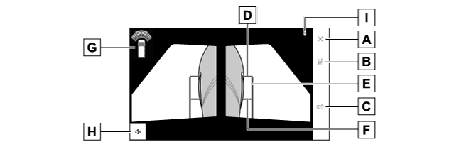 クリアランスソナー感知状態でパノラミックビューモニター画面を解除した場合、マルチメディアシステム画面に表示されるクリアランスソナーマークにタッチすると、再度パノラミックビューモニター画面が表示されます。
