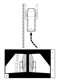 同時に車幅平行線と目標物が平行になるように運転操作することで、目標物に沿って駐車できます。