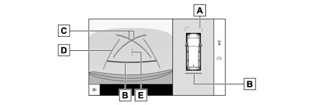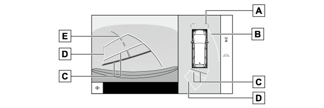 • 乗車人数、積載量、路面の勾配などにより、画面のガイド線の示す位置はかわります。必ず後方や周囲の安全を直接確認しながら運転してください。