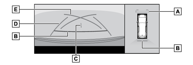 - 後方車幅延長線車をまっすぐ後退させたときの進路の目安を示します。
