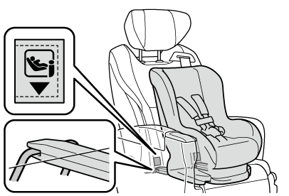 2. ヘッドレストとチャイルドシートが干渉してチャイルドシートが正しく取り付けられない場合、ヘッドレストの取りはずしが可能なときは、ヘッドレストを取りはずしてください。取りはずしができない場合は、ヘッドレストをいちばん上まで上げてください。(→ヘッドレスト