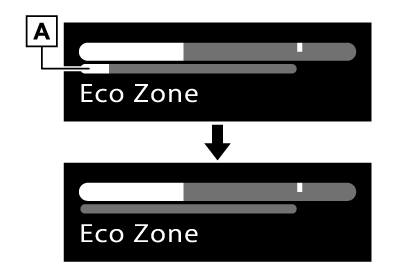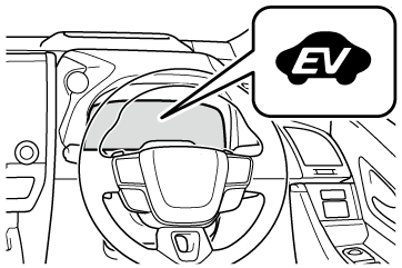 ガソリンエンジン停止中や、電気モーターのみで走行しているときに、EVインジケーターが点灯します。