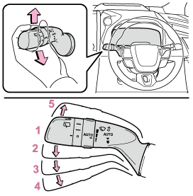 レバーを操作すると、ワイパーまたはウォッシャーが作動します。