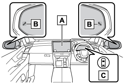 - マルチメディアディスプレイブラインドスポットモニターのON/OFFを切りかえます。